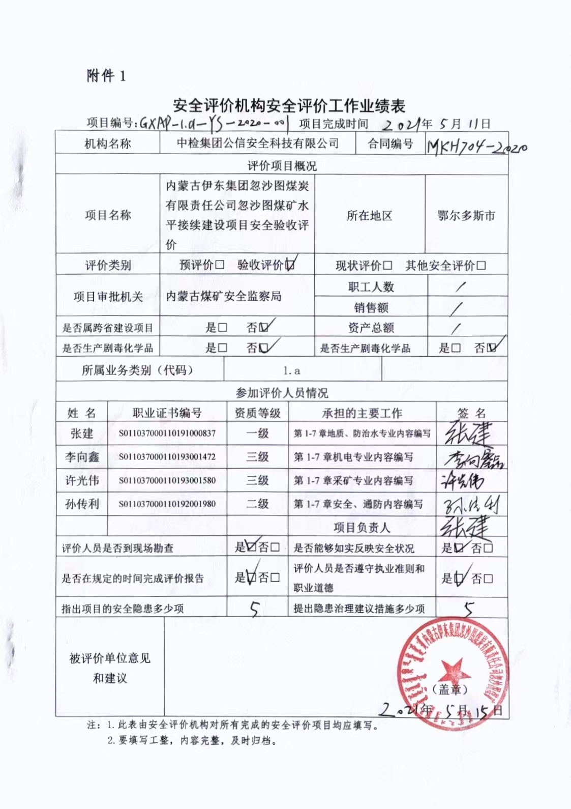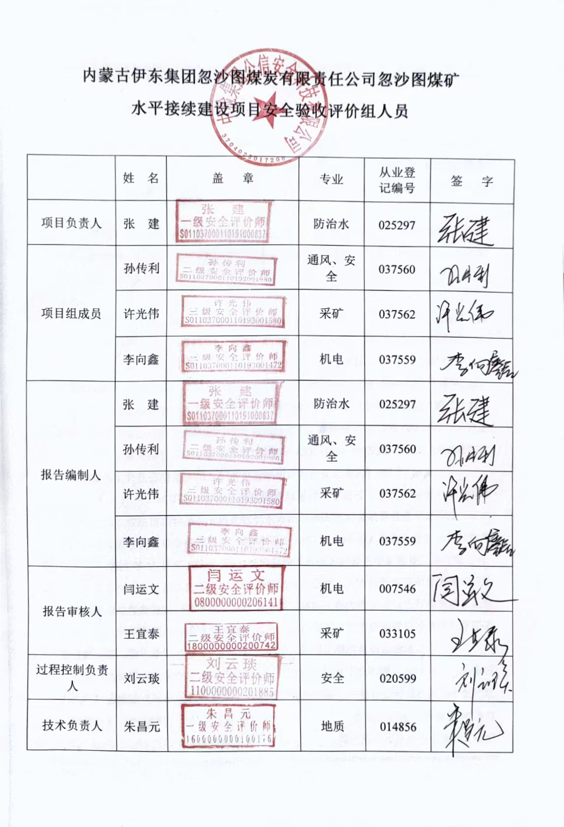 評(píng)價(jià)項(xiàng)目名稱 | 內(nèi)蒙古伊東集團(tuán)忽沙圖煤炭有限責(zé)任公司忽沙圖煤礦水平接續(xù)建設(shè)項(xiàng)目安全驗(yàn)收評(píng)價(jià) | ||||||