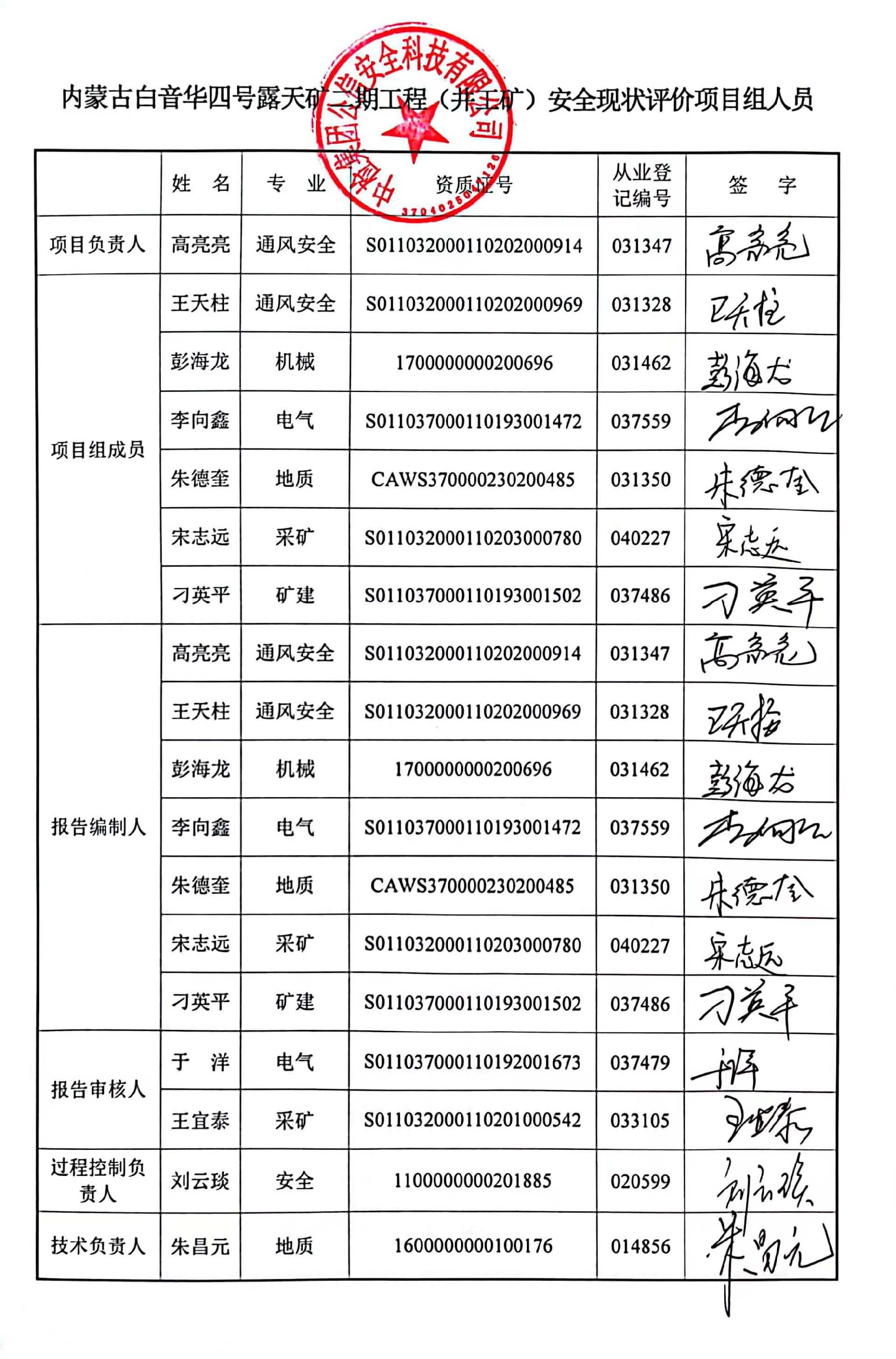 參與安全評價工作的注冊安全工程師: 高亮亮、朱德奎、彭海龍、宋志遠(yuǎn)、王天柱 | ||||||