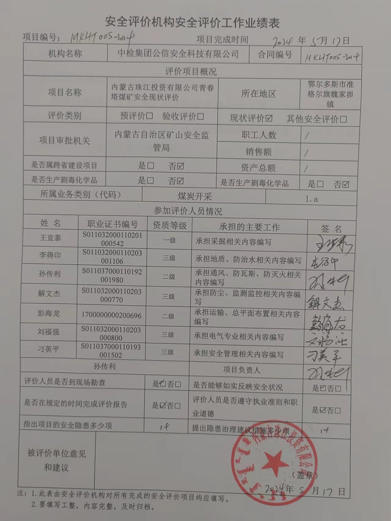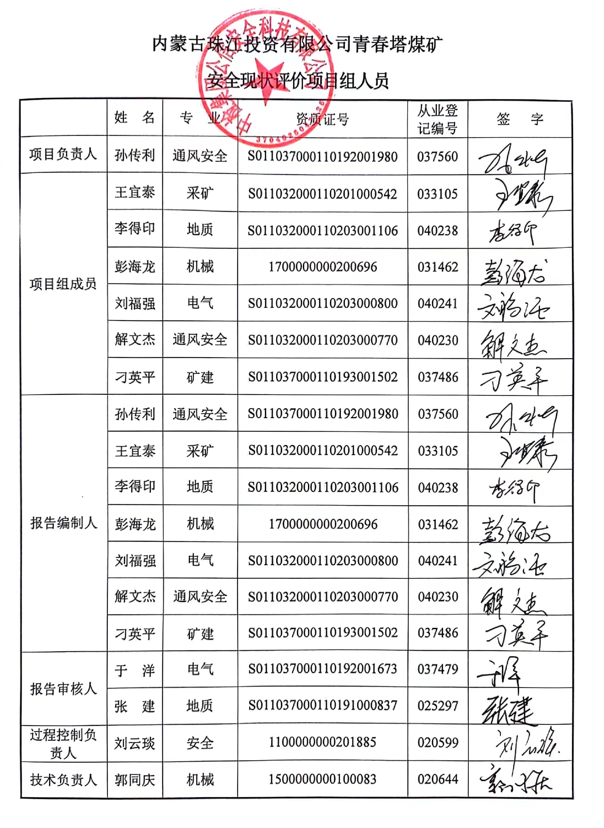 評價項目名稱 | 內(nèi)蒙古珠江投資有限公司青春塔煤礦安全現(xiàn)狀評價 | ||||||