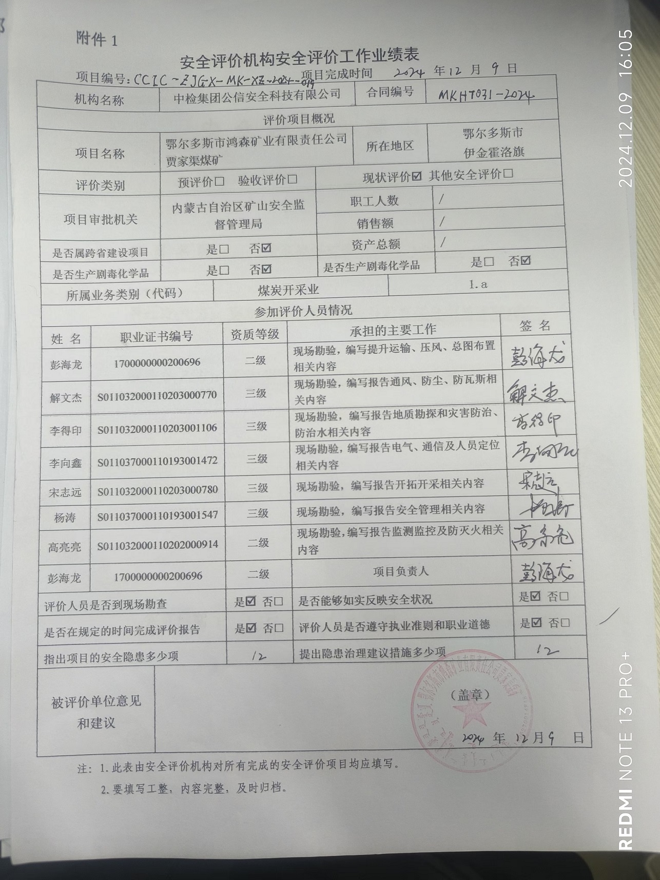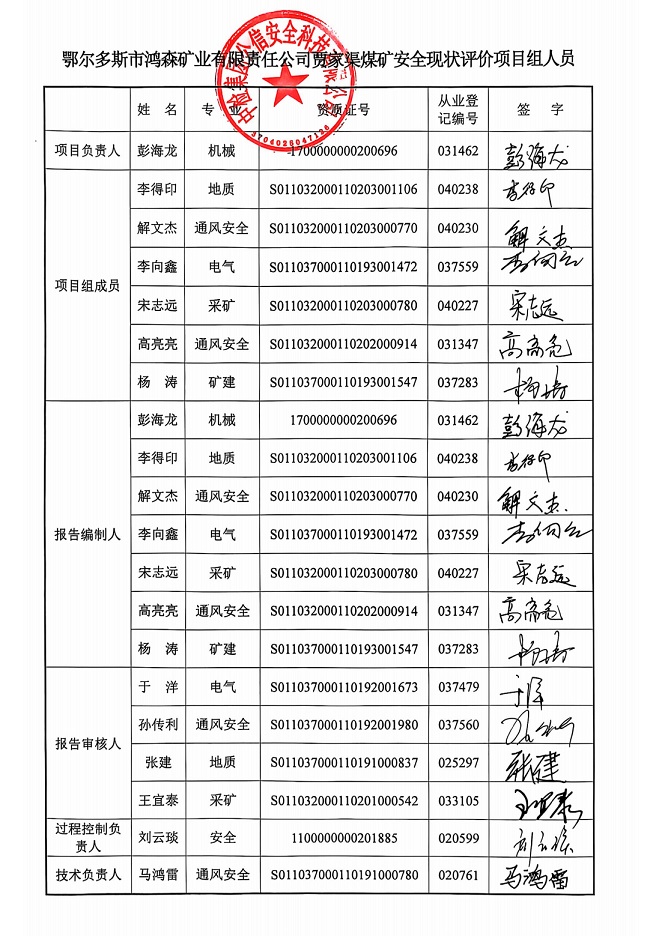 評價項目名稱 | 鄂爾多斯市鴻森礦業(yè)有限責任公司賈家渠煤礦安全現(xiàn)狀評價報告 | ||||||