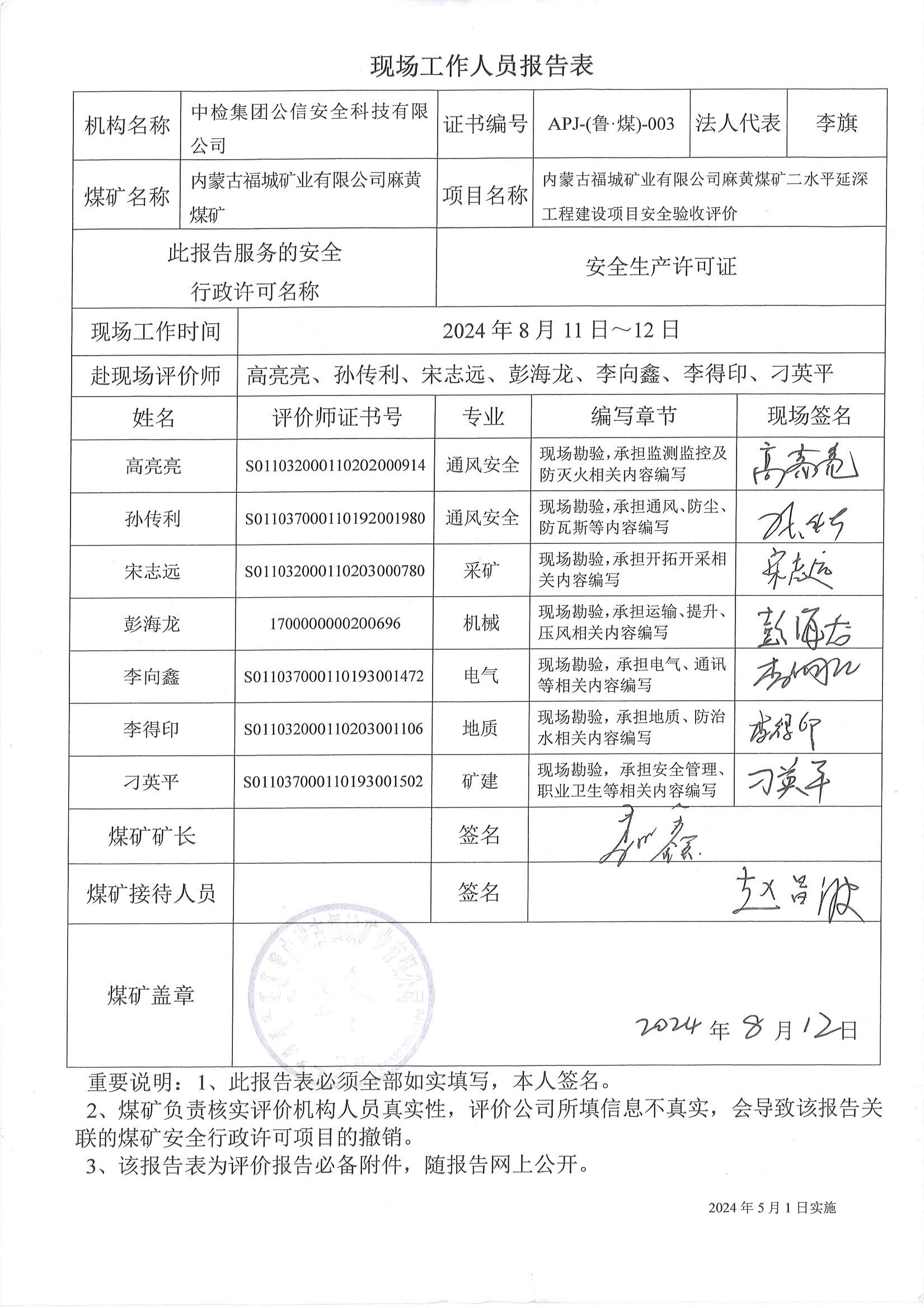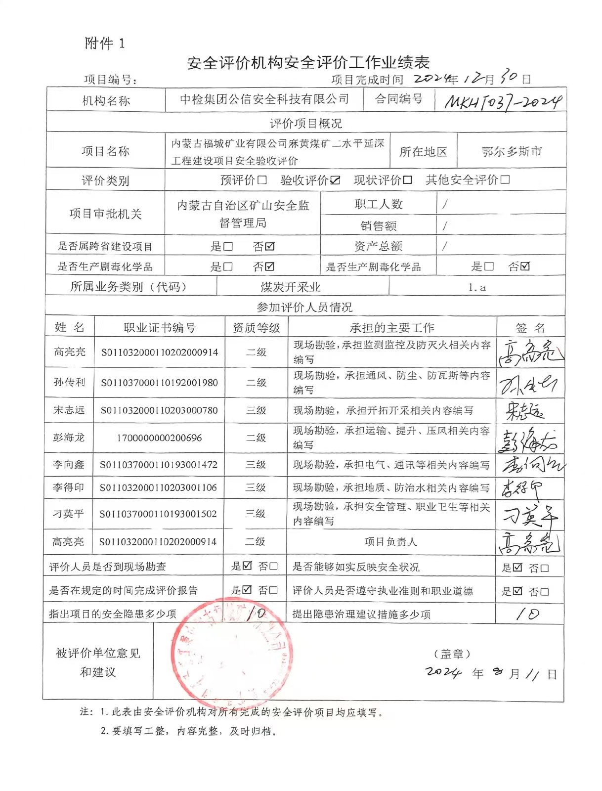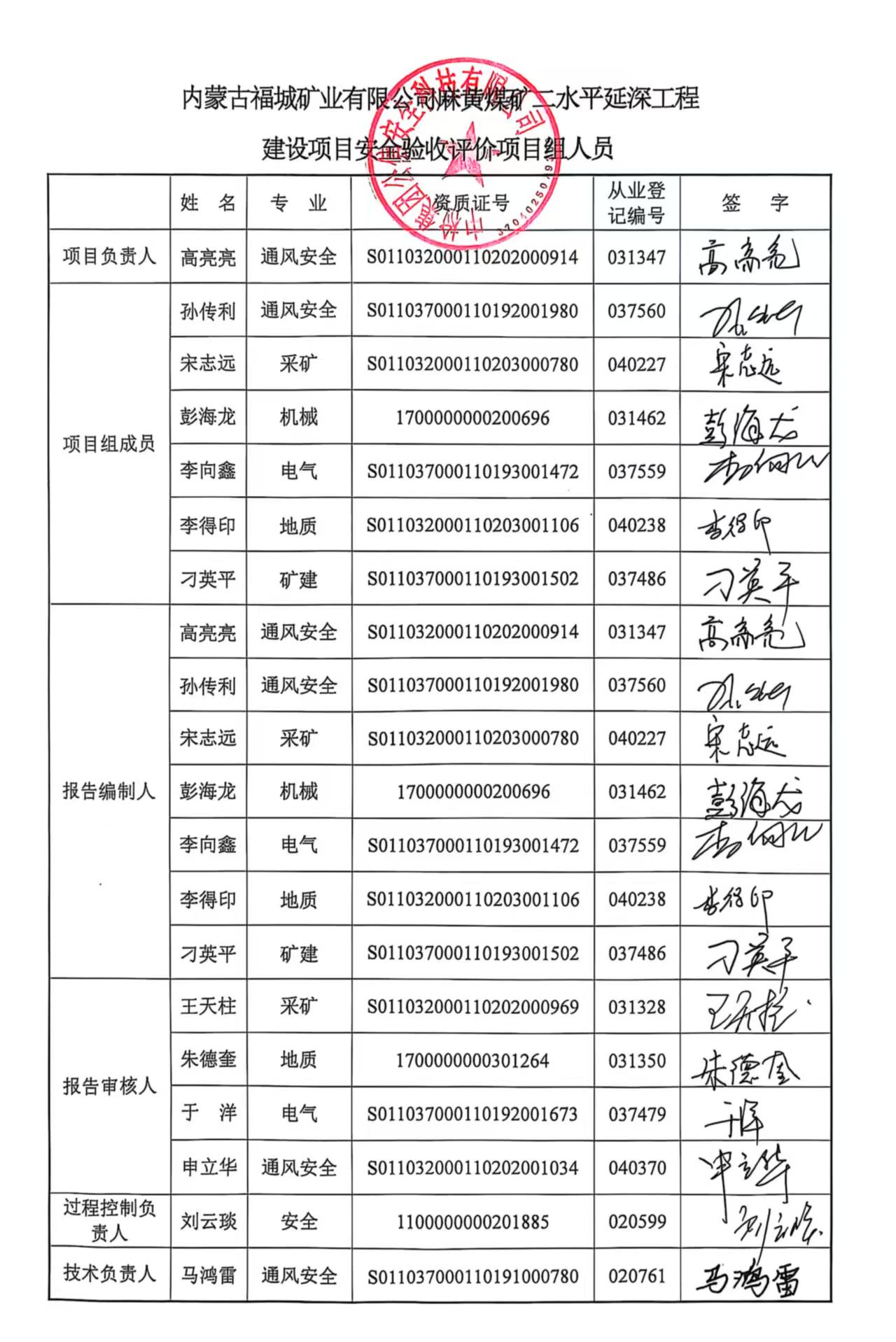 評價項目名稱 | 內(nèi)蒙古福城礦業(yè)有限公司麻黃煤礦二水平延深工程建設(shè)項目安全驗(yàn)收評價 | ||||||