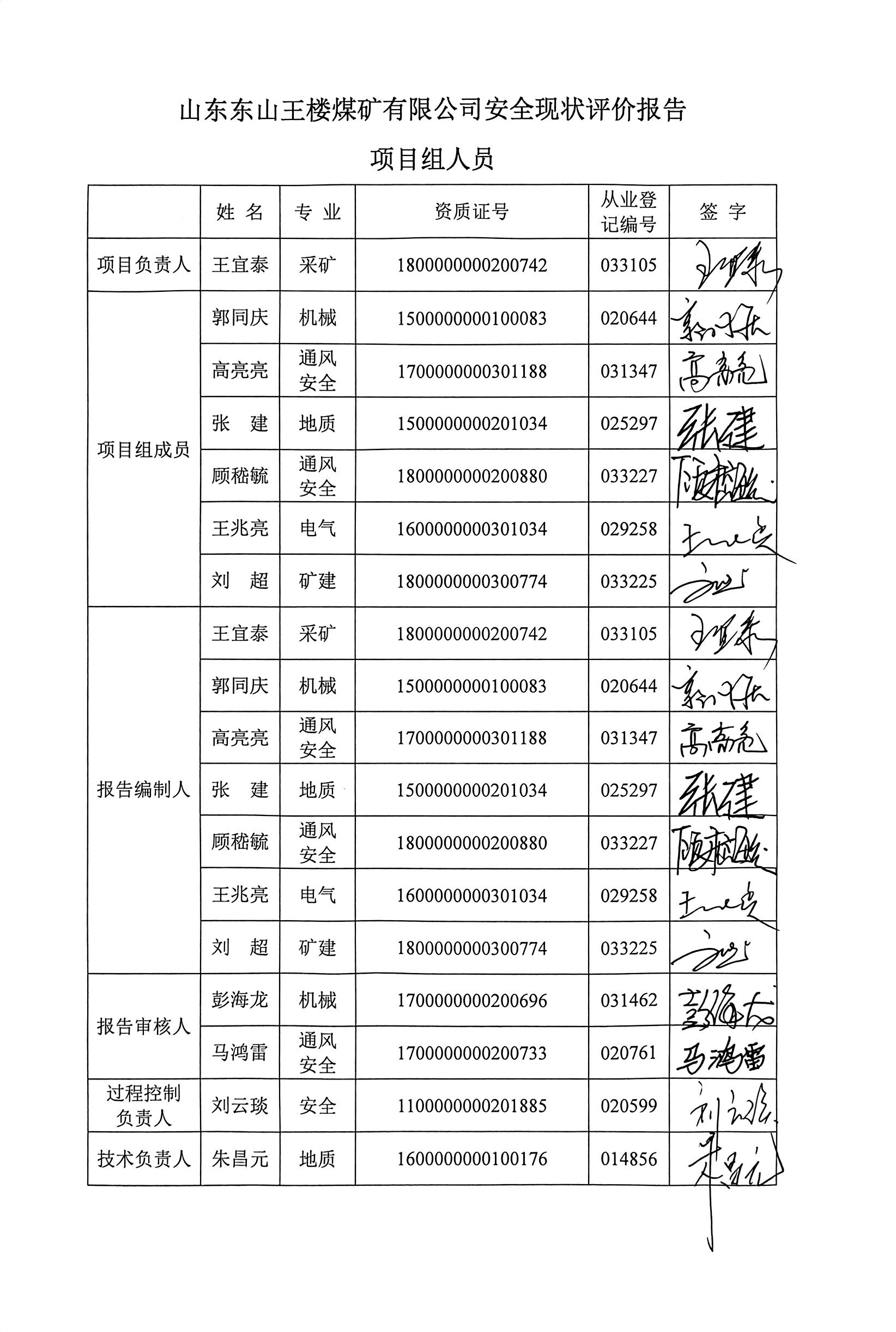 參與安全評價工作的注冊安全工程師: 王宜泰、郭同慶、高亮亮、張建、顧嵇毓、王兆亮 | ||||||
