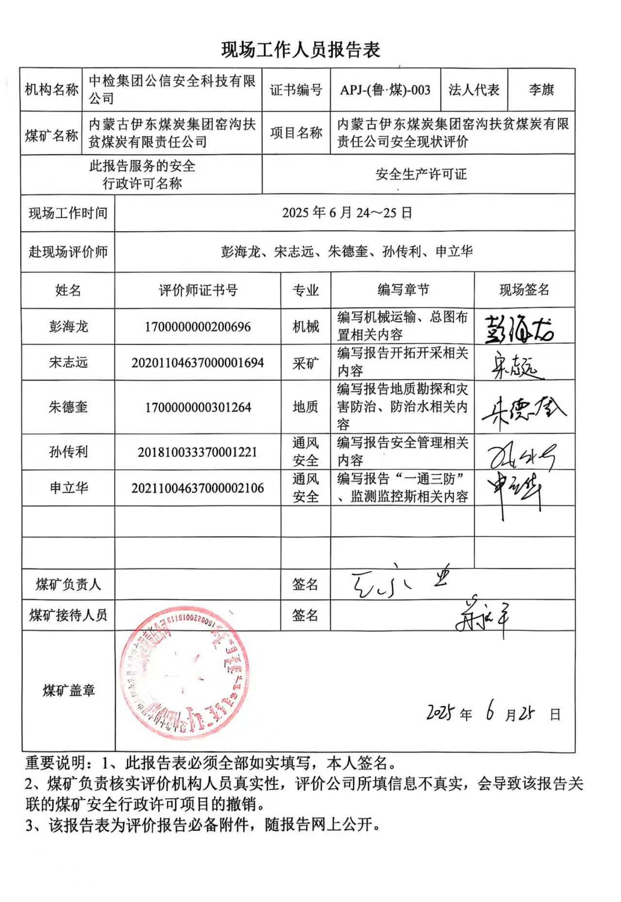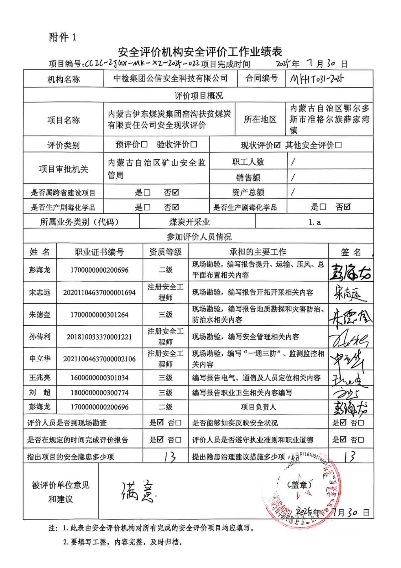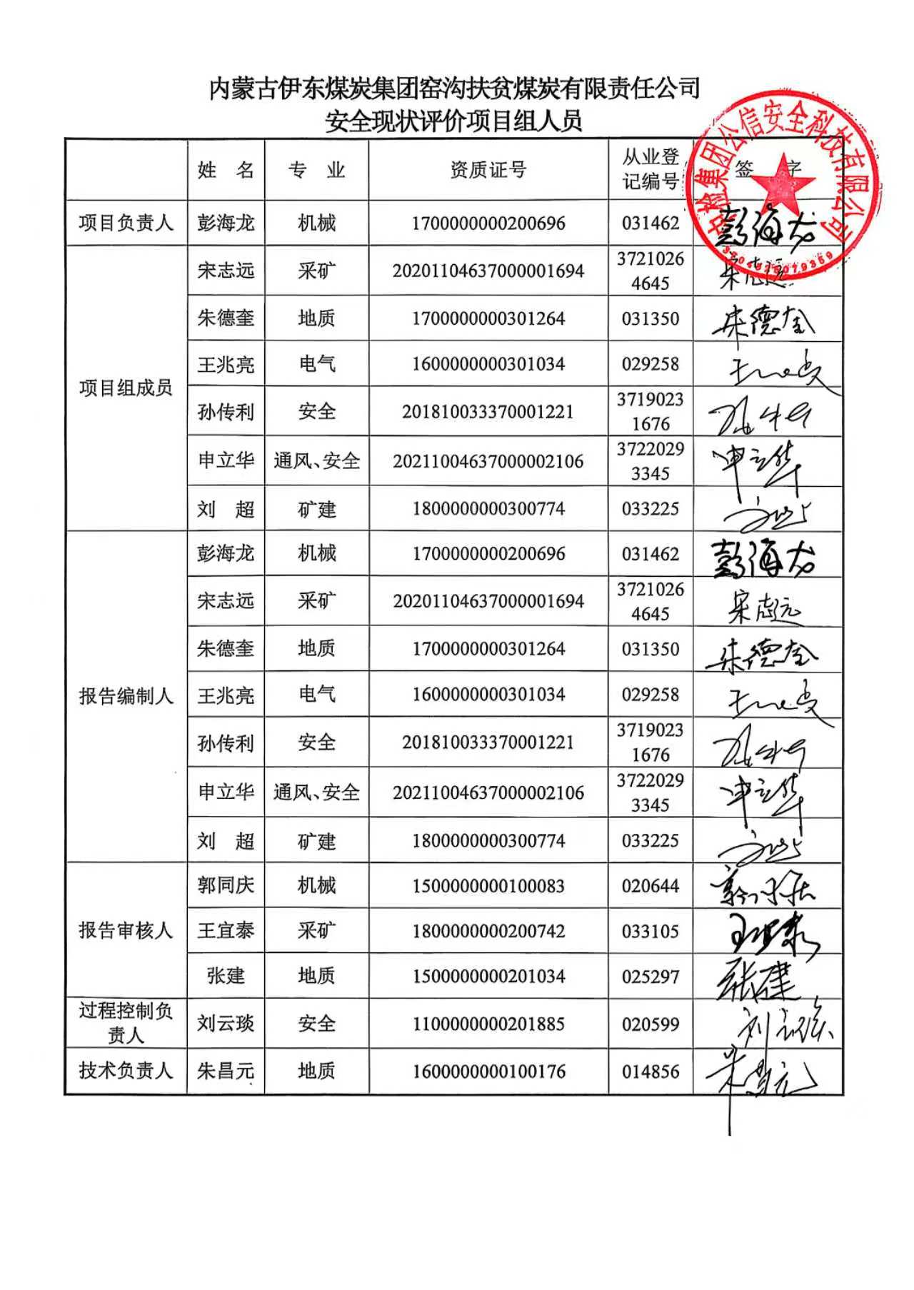 評價項目名稱 | 內(nèi)蒙古伊東煤炭集團窯溝扶貧煤炭有限責(zé)任公司安全現(xiàn)狀評價報告 | ||||||