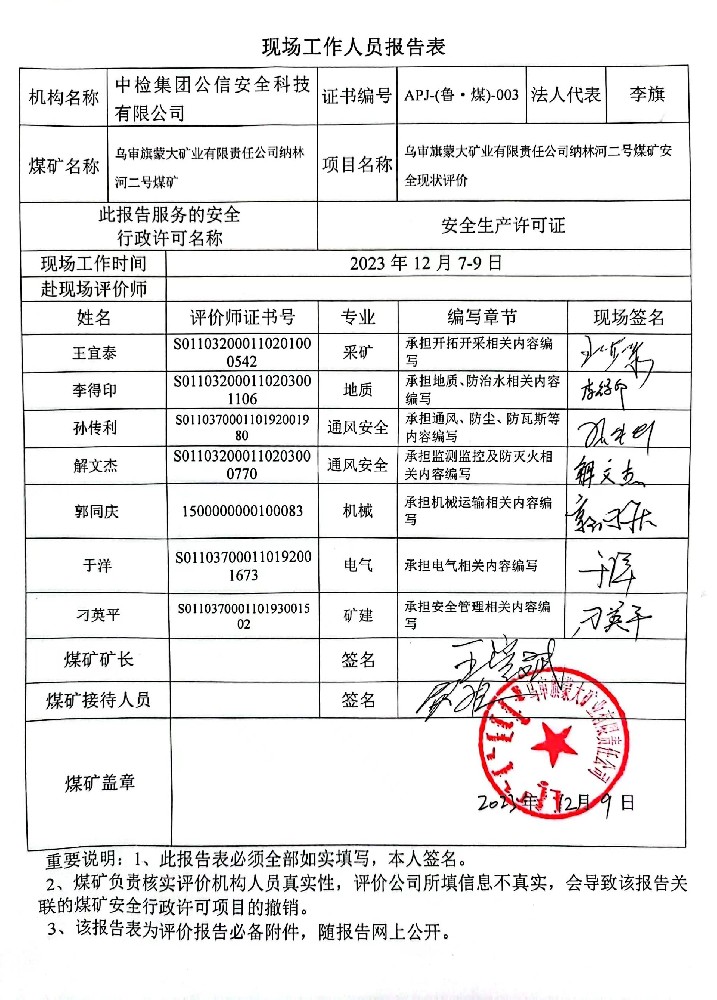 2烏審旗蒙大礦業(yè)有限責(zé)任公司納林河二號煤礦安全現(xiàn)狀評價報告