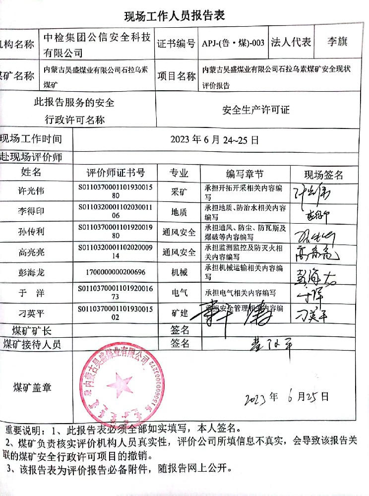 2023年3.1蒙古昊盛煤業(yè)有限公司石拉烏素煤礦安全現(xiàn)狀評價報告