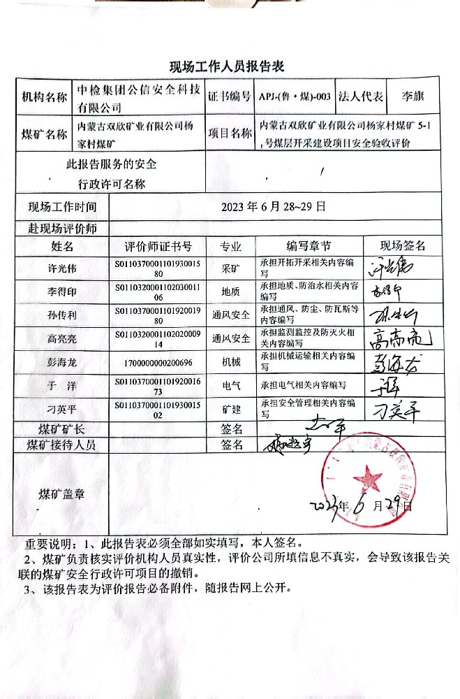 2023年3.3內(nèi)蒙古雙欣礦業(yè)有限公司楊家村煤礦5-1上號煤層開采建設(shè)項目安全驗收評價報告