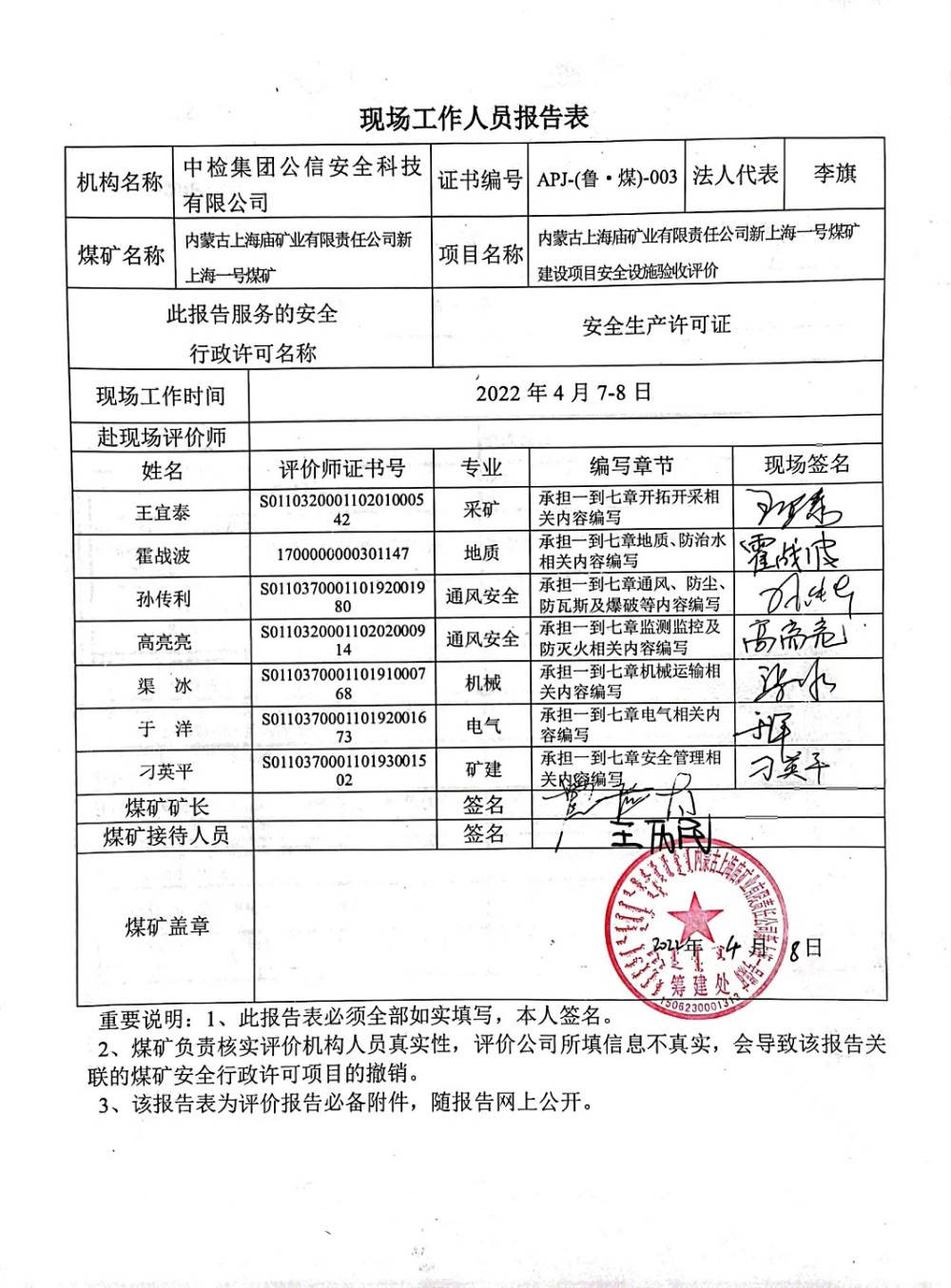 安全評(píng)價(jià)報(bào)告網(wǎng)上公開信息表 季度:二季度 評(píng)價(jià)項(xiàng)目名稱 內(nèi)蒙古上海廟礦業(yè)有限責(zé)任公司新上海一號(hào)煤礦建設(shè)項(xiàng)目