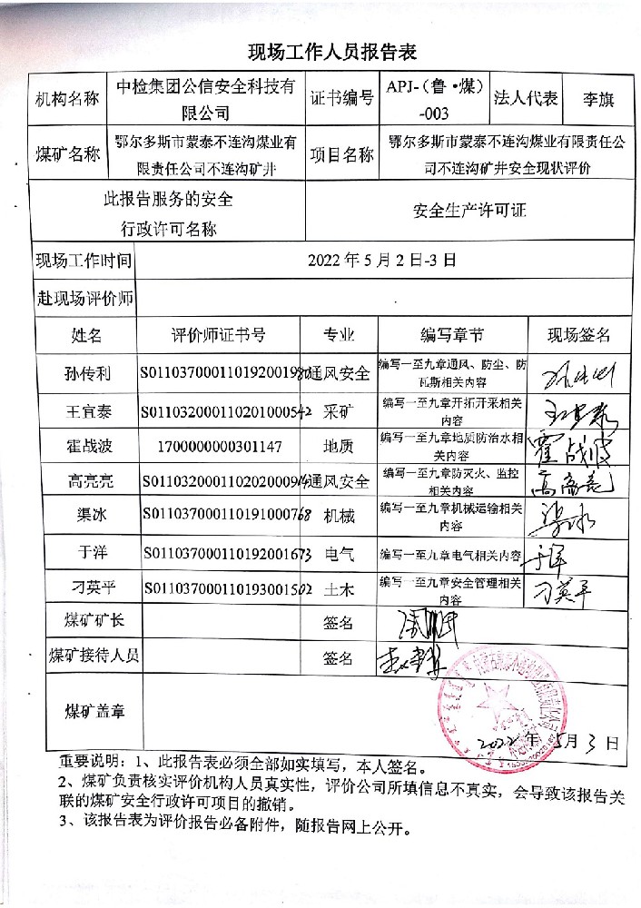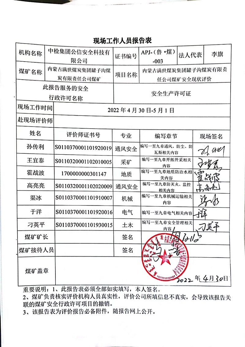 安全評(píng)價(jià)報(bào)告網(wǎng)上公開信息表 季度: 二季度 評(píng)價(jià)項(xiàng)目名稱 內(nèi)蒙古滿世煤炭集團(tuán)罐子溝煤炭有限責(zé)任公司