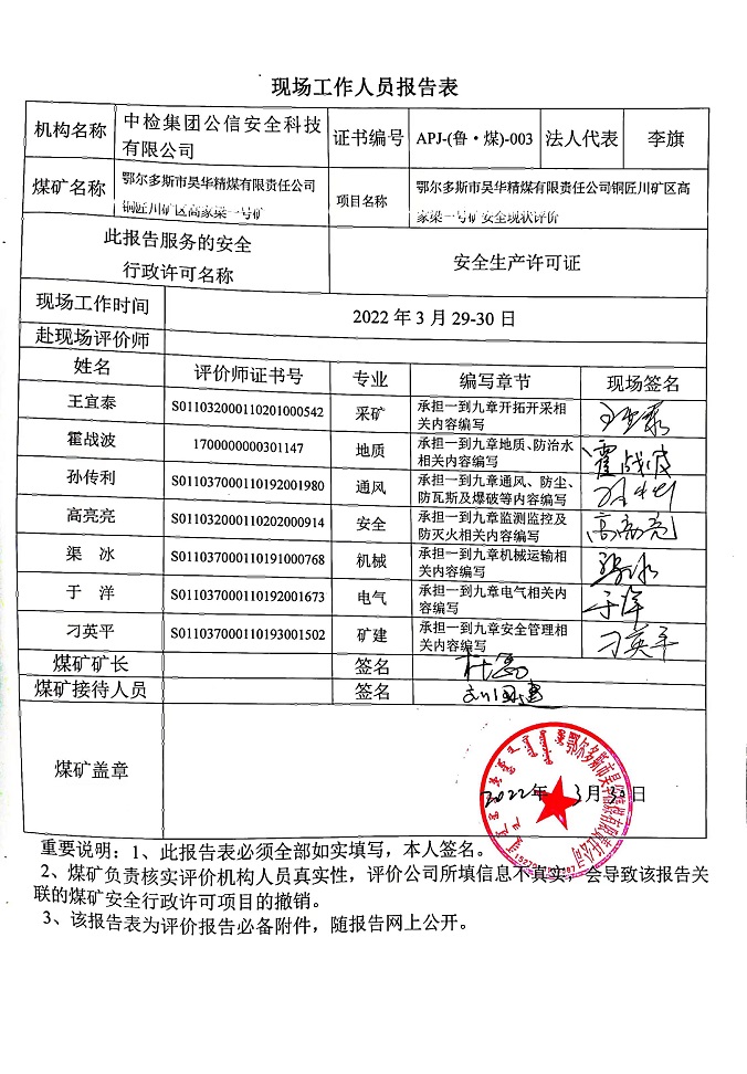 2022年第2季度4準(zhǔn)格爾旗云飛礦業(yè)有限責(zé)任公司串草圪旦煤礦安全現(xiàn)狀評(píng)價(jià)