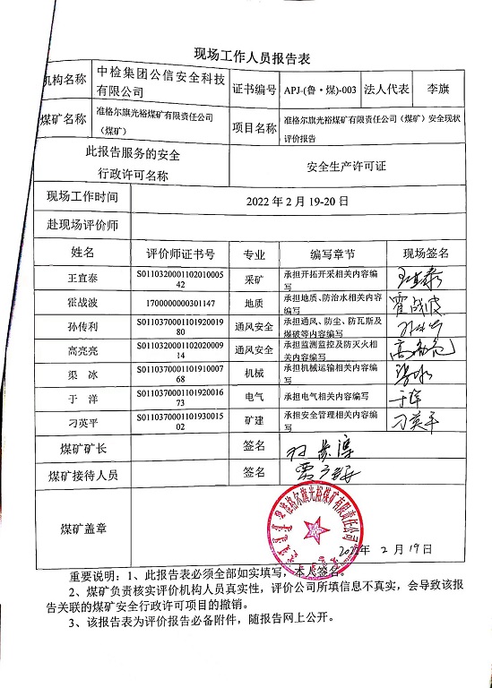 2022年第2季度2準(zhǔn)格爾旗光裕煤礦有限責(zé)任公司(煤礦)安全現(xiàn)狀評(píng)價(jià)報(bào)告
