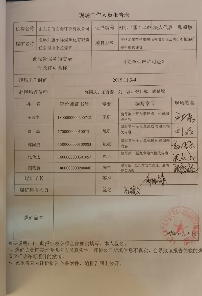 2020年第2季度1.準格爾旗榮祥煤焦化有限責任公司山不拉煤礦安全現(xiàn)狀評價報告