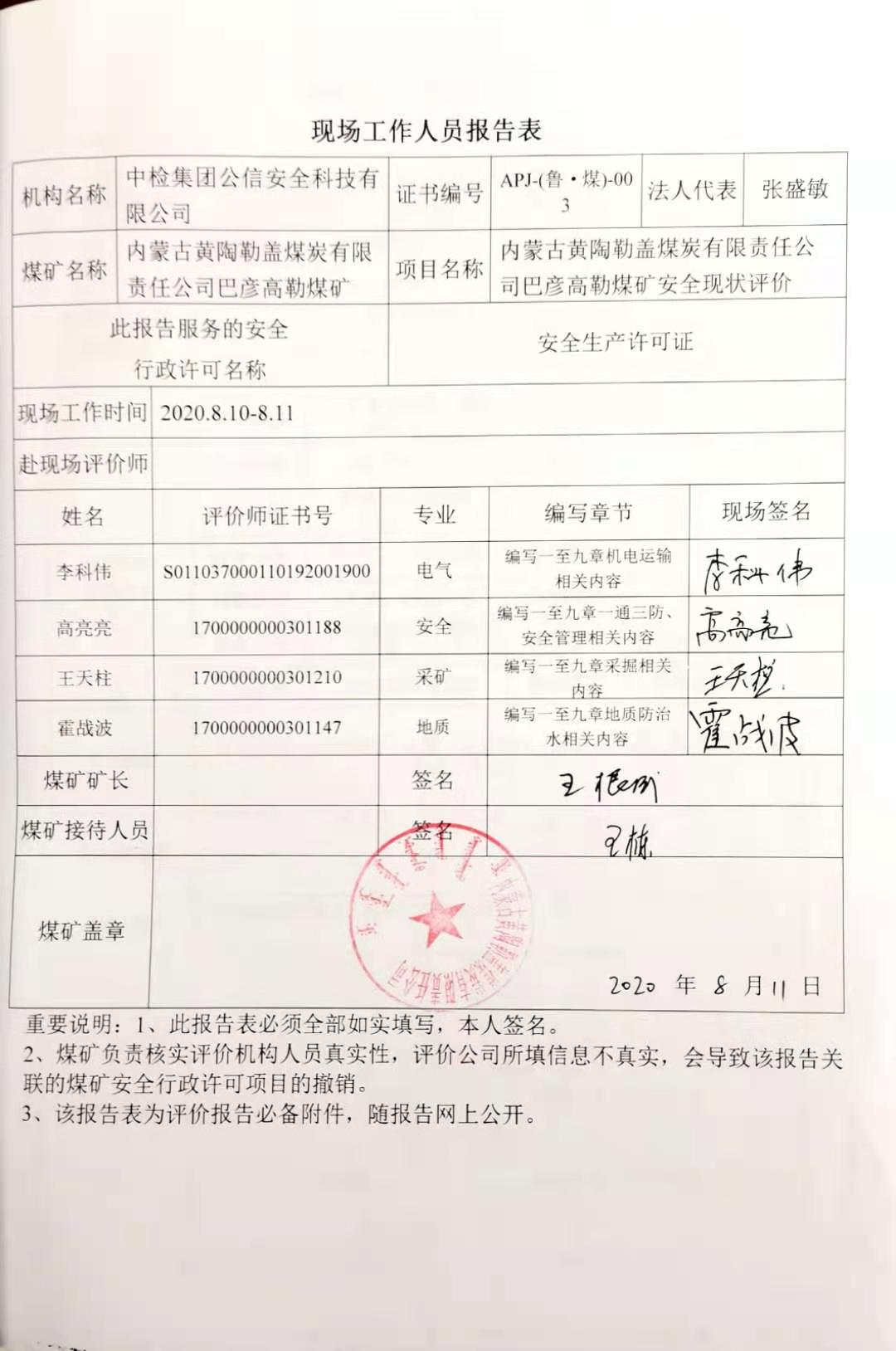2020年第4季度3.內(nèi)蒙古黃陶勒蓋煤炭有限責(zé)任公司巴彥高勒煤礦安全現(xiàn)狀評價報告