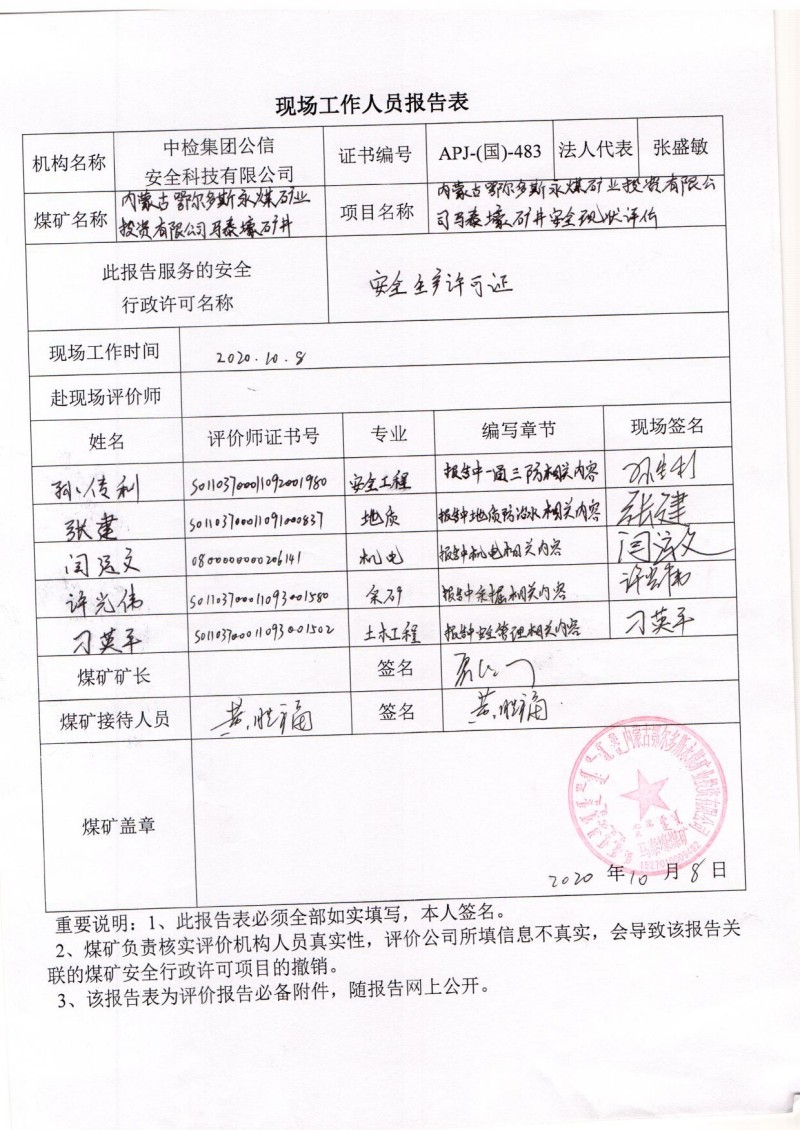 2020年第4季度2.內(nèi)蒙古鄂爾多斯永煤礦業(yè)投資有限公司馬泰壕煤礦安全現(xiàn)狀評價報告