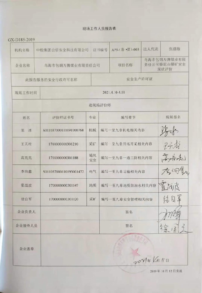 2021年第2季度8烏海市包鋼萬(wàn)騰煤業(yè)有限責(zé)任公司駱駝山煤礦安全現(xiàn)狀評(píng)價(jià)報(bào)告