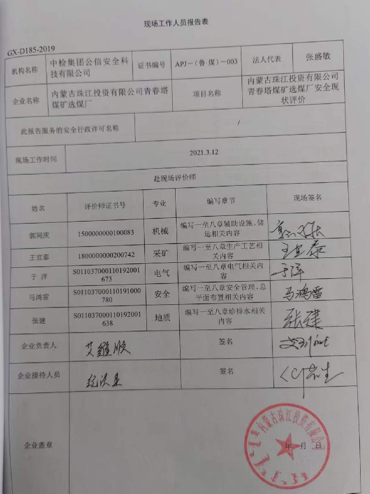 2021年第2季度9內(nèi)蒙古珠江投資有限公司青春塔煤礦選煤廠安全現(xiàn)狀評(píng)價(jià)