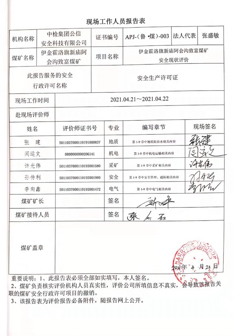 2021年第3季度1.伊金霍洛旗新廟阿會溝致富煤礦安全現(xiàn)狀評價