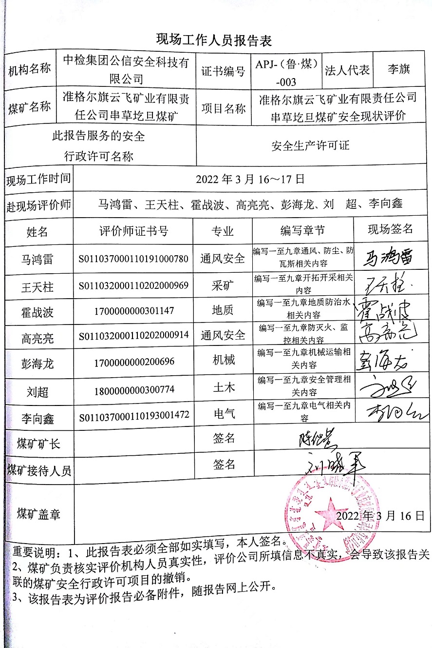 2022年第2季度4準(zhǔn)格爾旗云飛礦業(yè)有限責(zé)任公司串草圪旦煤礦安全現(xiàn)狀評價