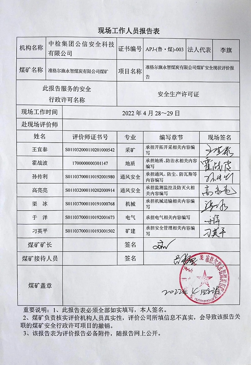 2022年第2季度5準(zhǔn)格爾旗永智煤炭有限公司煤礦安全現(xiàn)狀評價報告