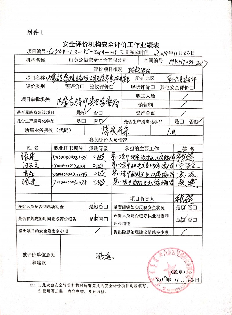 | 評價項目名稱 | 內(nèi)蒙古昊盛煤業(yè)有限公司石拉烏素礦井建設(shè)項目安全驗收評價 | ||||||