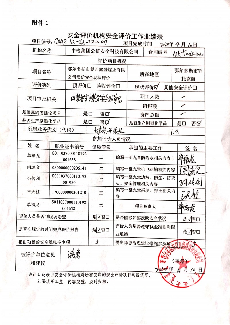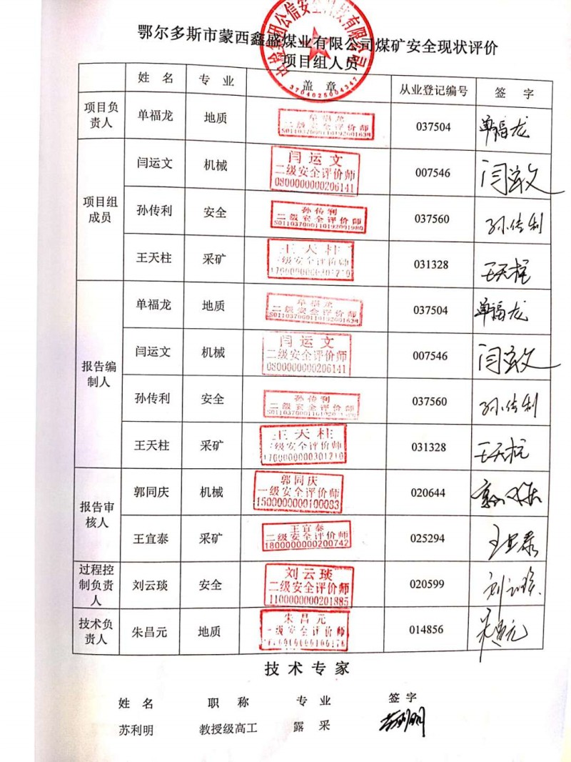 | 評價項目名稱 | 鄂爾多斯市蒙西鑫盛煤業(yè)有限公司煤礦 | ||||||
