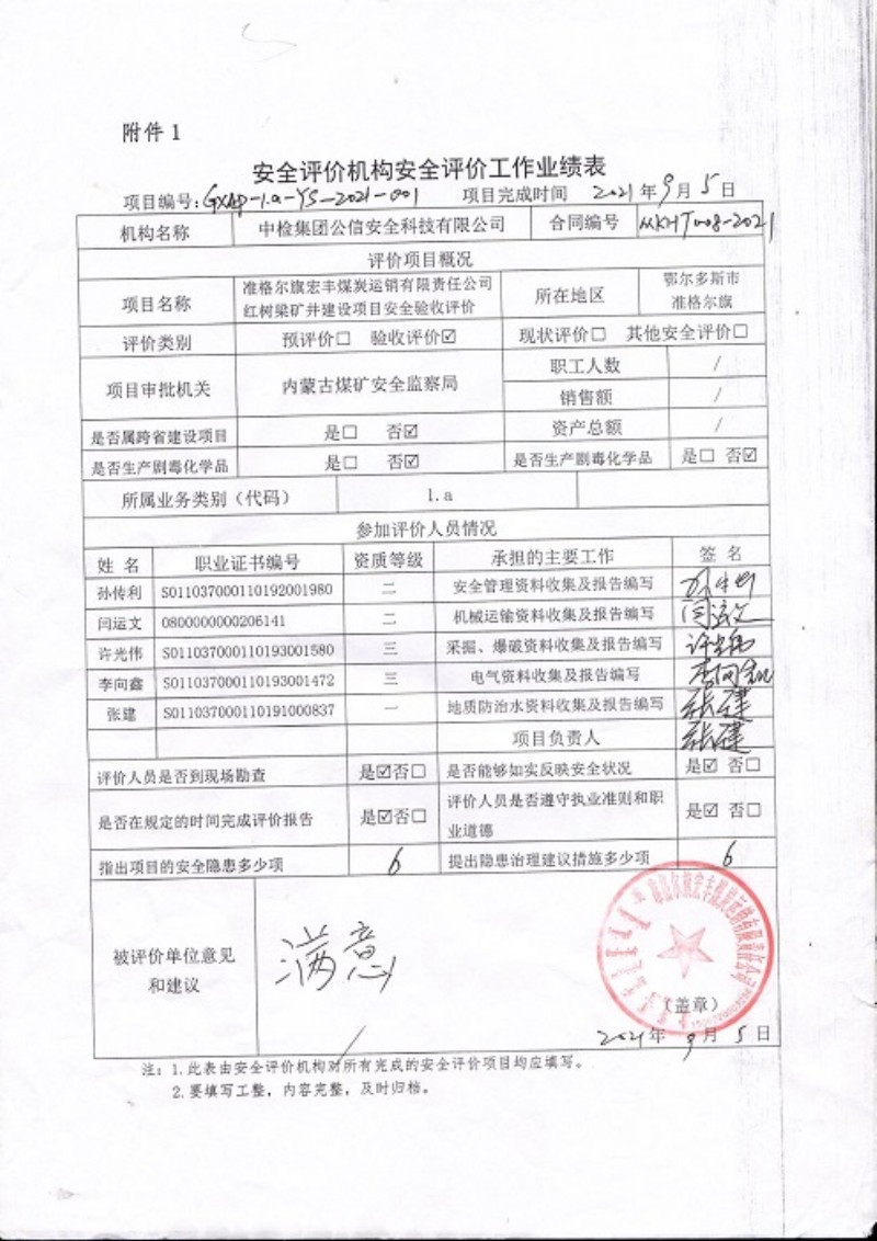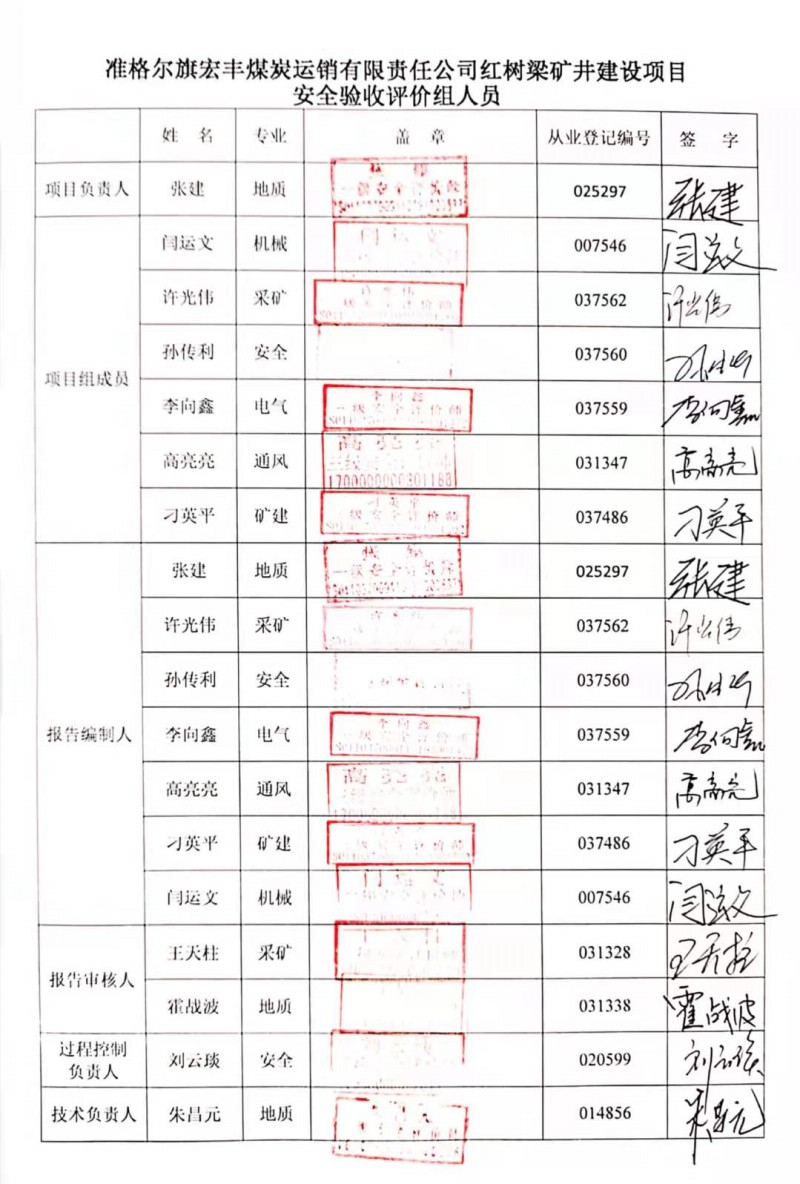 | 評價項目名稱 | 準(zhǔn)格爾旗宏豐煤炭運(yùn)銷有限責(zé)任公司紅樹梁礦井建設(shè)項目安全驗收評價報告 | ||||||