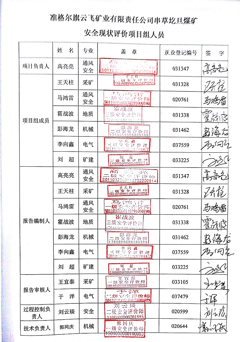 | 參與安全評(píng)價(jià)工作的安全評(píng)價(jià)師: 高亮亮 王天柱 馬鴻雷 霍戰(zhàn)波 彭海龍 李向鑫 劉超 |
