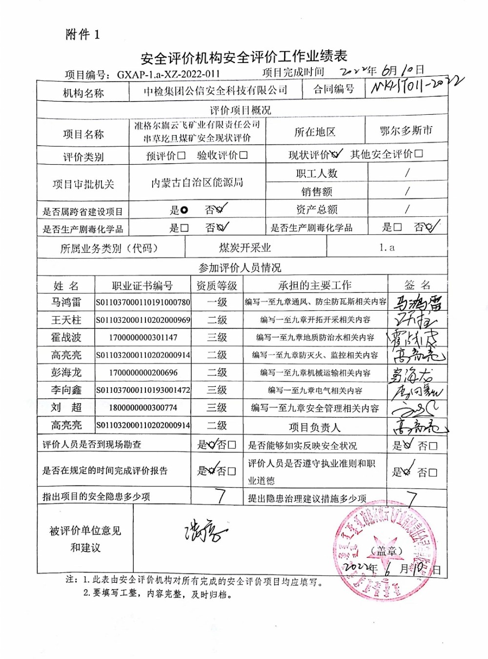 | 評(píng)價(jià)項(xiàng)目名稱 | 準(zhǔn)格爾旗云飛礦業(yè)有限責(zé)任公司串草圪旦煤礦安全現(xiàn)狀評(píng)價(jià) | ||||||