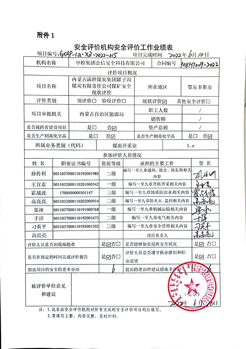 | 評(píng)價(jià)項(xiàng)目名稱 | 內(nèi)蒙古滿世煤炭集團(tuán)罐子溝煤炭有限責(zé)任公司煤礦安全現(xiàn)狀評(píng)價(jià)報(bào)告 | ||||||